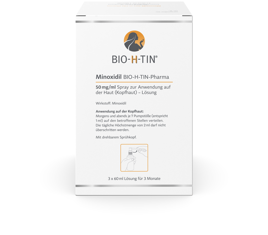 Bei erblich bedingtem Haarausfall können die Ursachen nicht behandelt werden. Mit MINOXIDIL BIO-H-TIN®