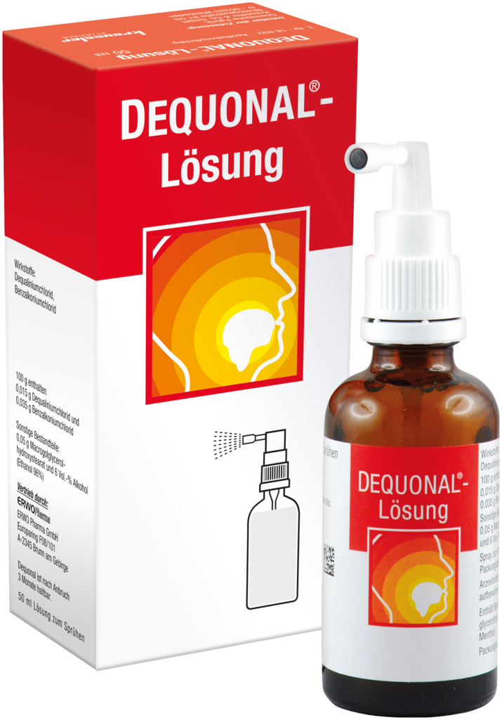Dequonal ist ein gebrauchsfertiges Arzneimittel zur Desinfektion (Antiseptikum) von Mund und Rachen und braucht nicht verdünnt zu werden. Die ungefärbte, wasserklare Lösung wird in der Mundhöhle zum Gurgeln, Spülen oder als Spray angewendet. Kinder und ältere oder schwerkranke Patienten, die nicht in der Lage sind zu gurgeln, können mit der Sprühlösung behandelt werden.