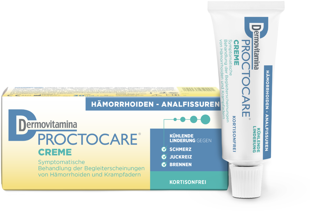 Dermovitamina Proctocare® Creme dringt aufgrund seiner besonderen Galenik gut und schnell ein. Dadurch werden die umfangreichen Wirkstoffe rasch in die Haut „eingeschleust“ und bewirken so eine umgehende Linderung jedes relevanten Symptoms.