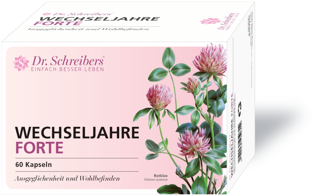 Dr. Schreibers® Wechseljahre forte ist ein Nahrungsergänzungsmittel und bietet natürliche Unterstützung in den Wechseljahren. Dr. Schreibers® Wechseljahre forte enthalten Isoflavone aus gentechnikfreiem Rotklee, Diosgenin aus der Yamswurzel und dem Vitamin B-Komplex.