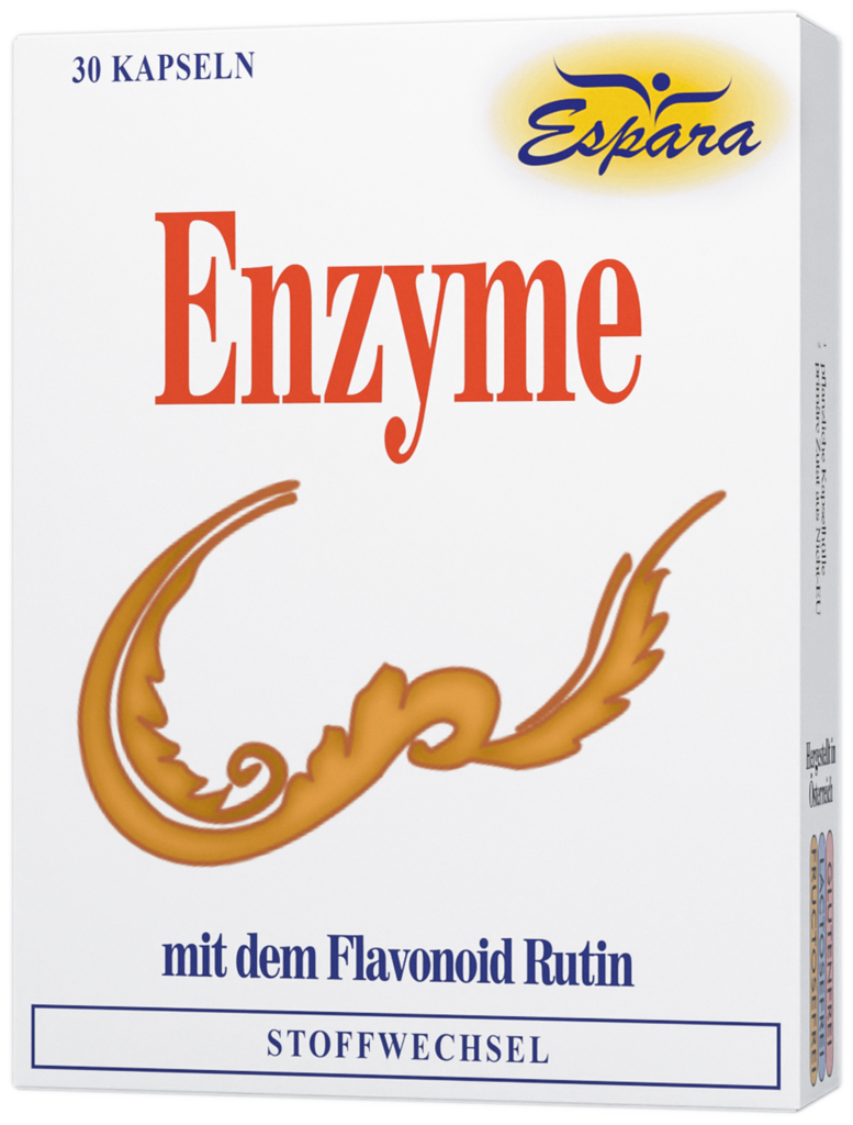 Nahrungsergänzungsmittel mit Enzymen und Rutin. Die pflanzliche Kapselhülle DRCAPSTM sorgt für eine verzögerte Freisetzung und schützt so die Enzyme vor der Magensäure.