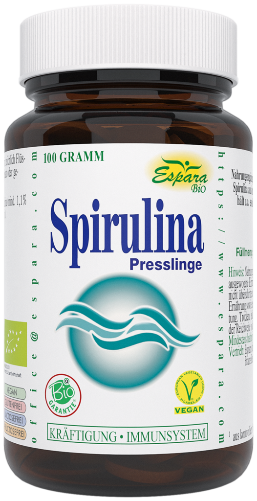 Nahrungsergänzungsmittel mit der vitalstoffreichen Mikroalge Spirulina aus kontrolliert biologischem Anbau.