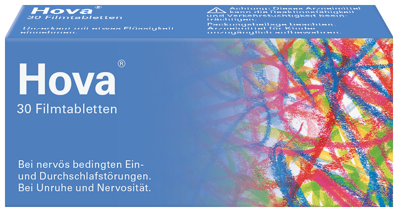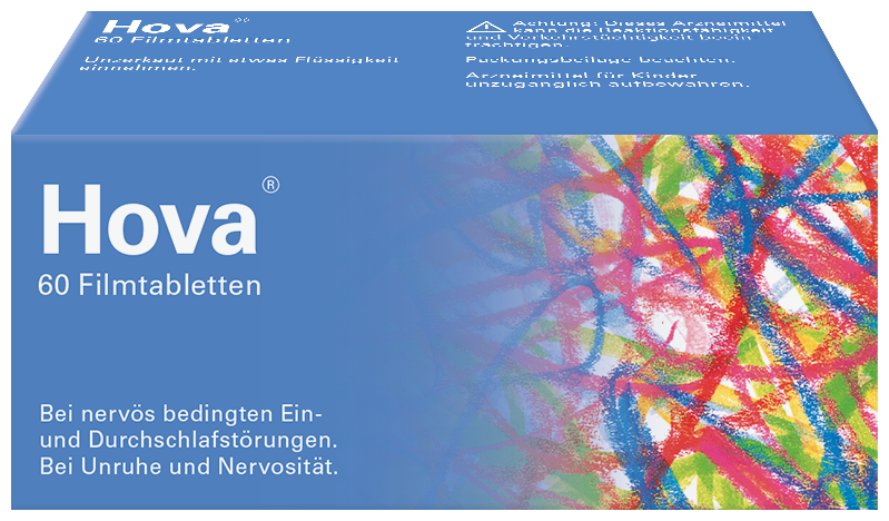 Hova–Filmtabletten sind eine Kombination von pflanzlichen Wirkstoffen mit beruhigender und schlaffördernder Wirkung. Diese werden bei nervös bedingten Ein- und Durchschlafstörungen, bei Unruhe und Nervosität angewendet.