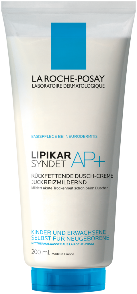 Lipikar SYNDET AP+ ist eine Dusch-Creme für Neugeborene, Babys, Kinder und Erwachsene mit atopischer, zu Neurodermitis neigender Haut. Für empfindliche, zu Juckreiz neigende Haut geeignet. Für die Kopfhaut von Babys geeignet. Lipikar Syndet AP+ Rückfettende Dusch-Creme beruhigt sofort und mildert ab der ersten Dusche extreme Trockenheit.