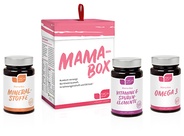 NICApur® Mama-Box ist ein Nahrungsergänzungsmittel mit Vitaminen, Spurenelementen, Mineralstoffen und der Omega-3-Fettsäure DHA. Für einen gesunden Start ins neue Leben!