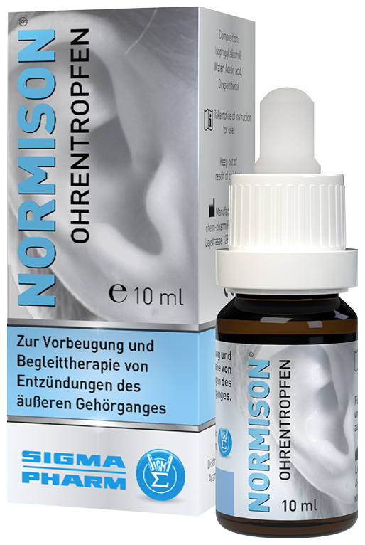 Entzündungen im äußeren Gehörgang werden durch zu hohe Feuchtigkeit sowie durch einen zu hohen, also alkalischen pH-Wert begünstigt. Insbesondere nach intensivem Kontakt mit Wasser ist daher die Entfernung von Feuchtigkeit eine wichtige Maßnahme zur Vorbeugung von Entzündungen. Die spezielle Zusammensetzung von Normison® – Ohrentropfen sorgt dafür, dass die Hautoberfläche im äußeren Gehörgang rasch trocknet. Die enthaltene Säurekomponente hilft, den natürlichen Säureschutzmantel der Haut wieder herzustellen bzw. zu erhalten. Das enthaltene Dexpanthenol bietet zusätzlich Schutz und Pflege für die Haut.