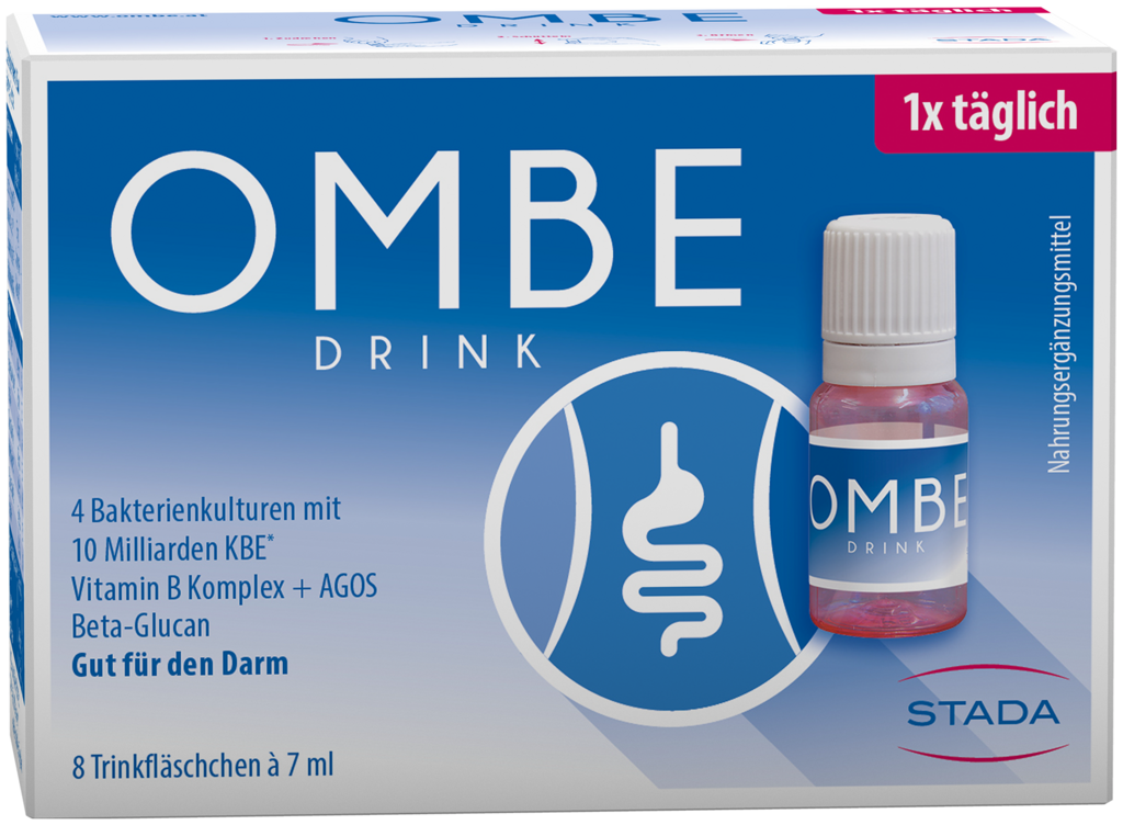 Antibiotikaeinnahme ist manchmal unerlässlich, kann unseren Darm jedoch durcheinanderbringen. OMBE Drink ist der ideale Begleiter bei Antibiotikatherapie und Stress. Es führt mindestens 10 Milliarden vermehrungsfähige Milchsäurebakterien in hochdosierter Zusammensetzung pro Trinkfläschchen zu, welche typisch für das Darmmikrobiom und daher sehr gut verträglich sind.