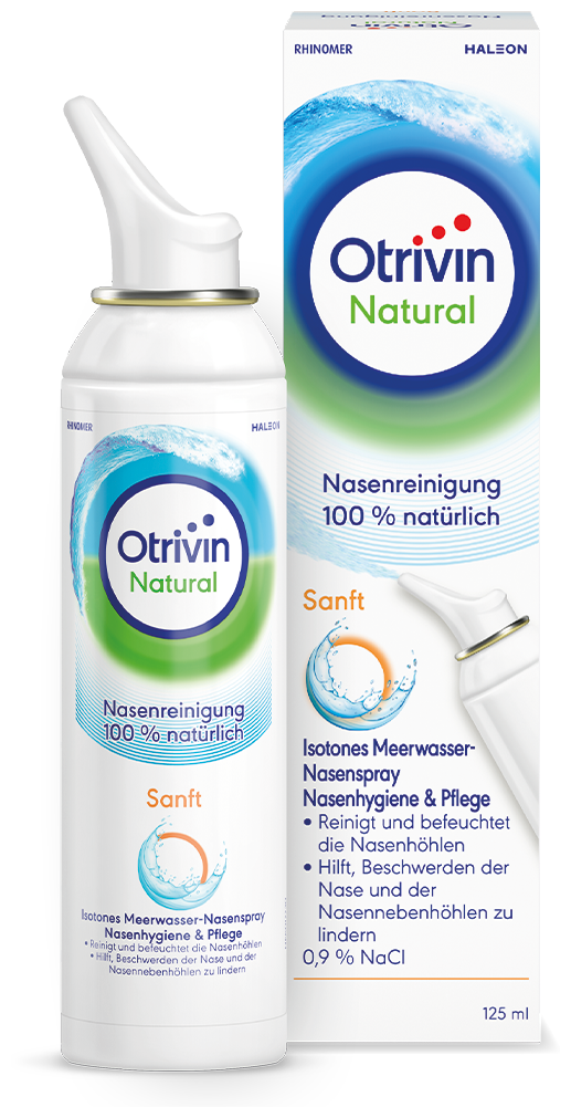 Otrivin Natural Nasenreinigung Sanft ist für alle Altersgruppen, und auch während der Schwangerschaft und Stillzeit geeignet. Sie kann in Kombination mit wirkstoffhaltigen, abschwellenden Nasensprays verwendet werden, vorzugsweise unmittelbar vor deren Anwendung.