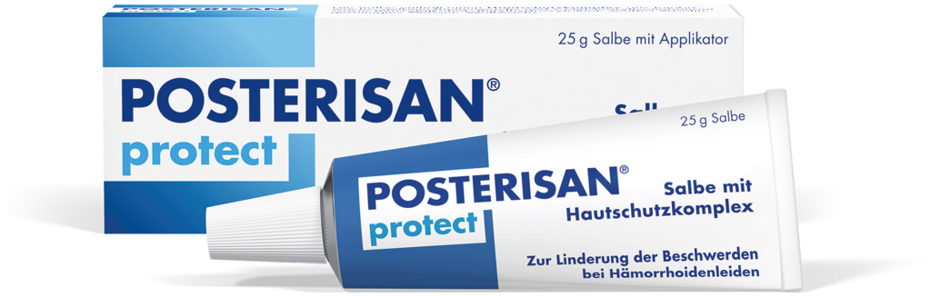 Posterisan® protect Salbe ist ein Medizinprodukt, dessen Wirksamkeit durch eine klinische Studie belegt ist: Posterisan® protect ist gut verträglich und reduziert die Anzahl und Dauer von akuten Hämorrhoidalbeschwerden. Bei konsequenter Anwendung verlängert es die beschwerdefreien Phasen*. Posterisan® protect ist ohne Rezept in allen Apotheken erhältlich.