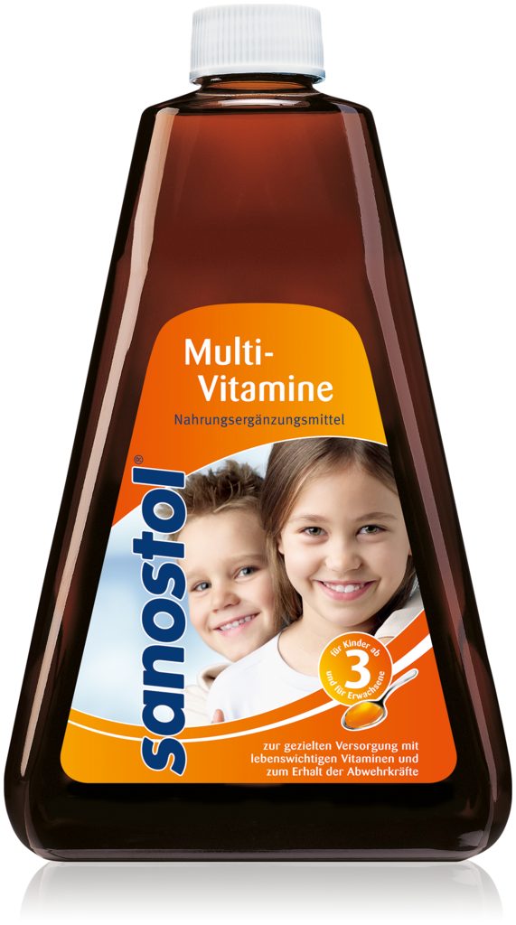 Sanostol® Multivitaminsaft für Kinder ab 3 Jahre, Jugendliche und Erwachsene.