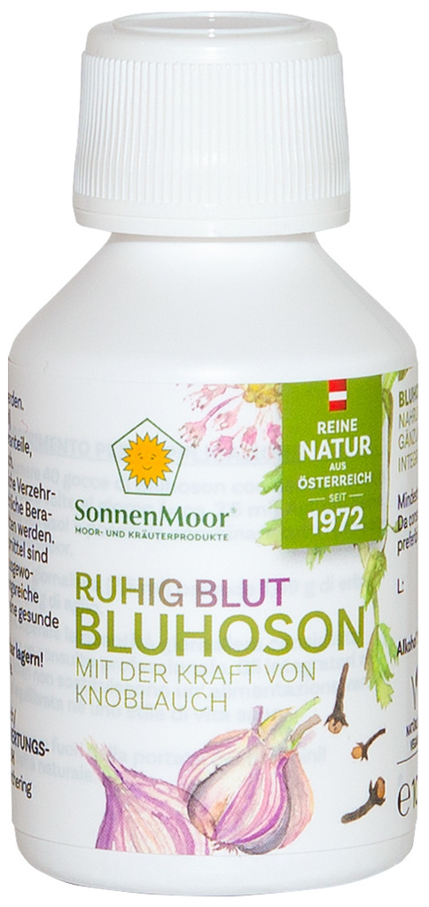 SonnenMoor Bluhoson ist ein hochwertiger, flüssiger Kräuterauszug. Dieses Nahrungsergänzungsmittel ist ein reines Naturprodukt und frei von chemischen Zusätzen oder Konservierungsstoffen. Die darin enthaltenen Gewürze und Pflanzen wie Knoblauch, Gewürznelken, Zimtrinde und Sellerieblätter stabilisieren den Blutdruck auf natürliche Weise und unterstützen die Gehirn- und Gedächtnisleistung. Der Kräuterauszug kann auch vorbeugend eingenommen werden, und wirkt sich positiv auf Ihr Wohlbefinden, Vitalität und Konzentration aus.