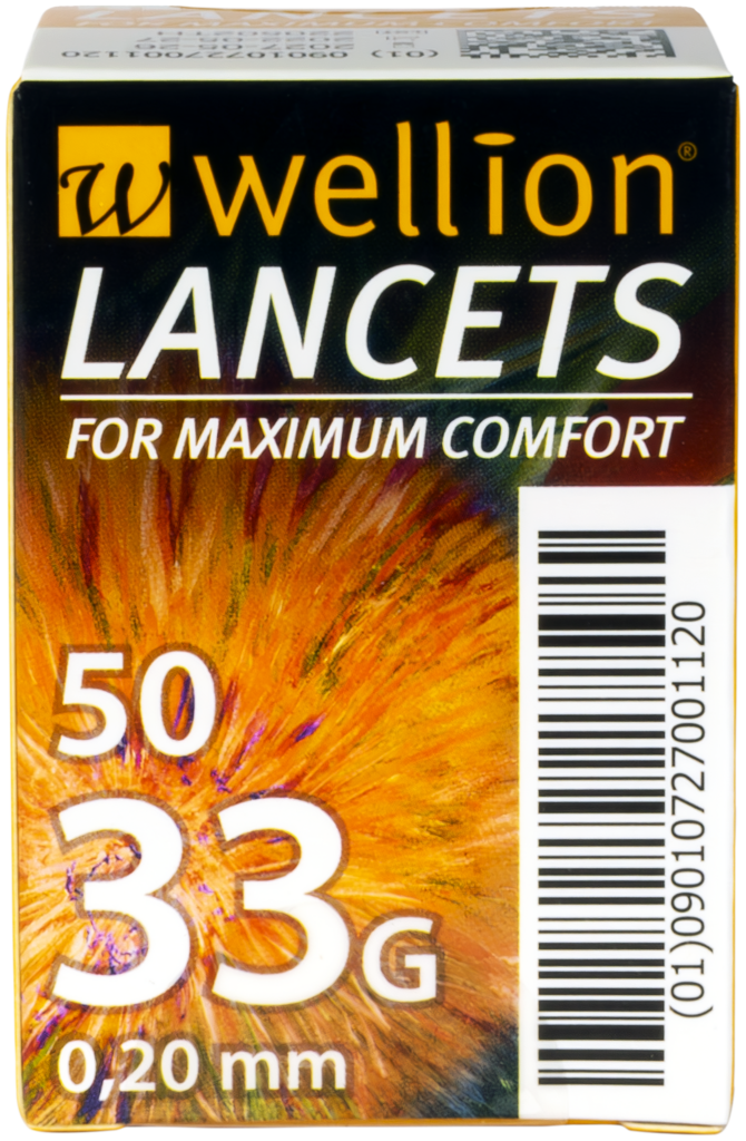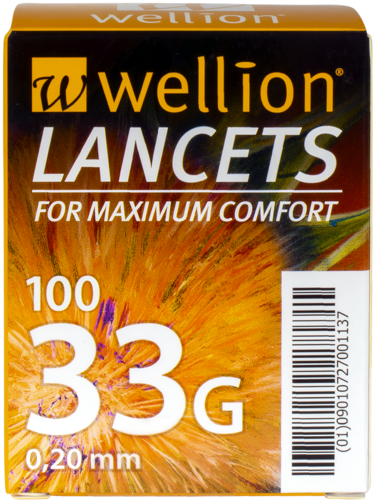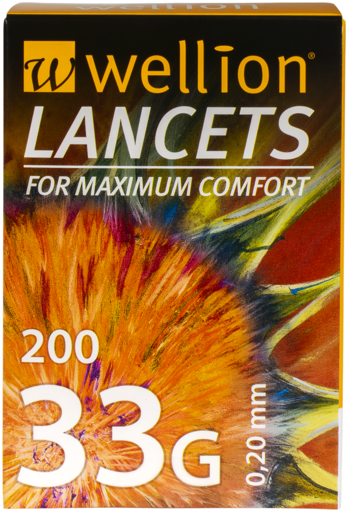 Wellion Lanzetten werden mit Hilfe einer passenden Stechhilfe zur schonenden Gewinnung eines Blutstropfens zum Beispiel zur Blutzuckermessung verwendet. Der feine Mehrfach-Schliff an der Spitze von Lanzetten erleichtert das sanfte Durchdringen der Haut, für eine möglichst schmerzarme Punktion. Die Wellion 33G Lanzetten sind besonders dünn und daher sehr gut für Kinder und Menschen mit empfindlicher Haut geeignet.