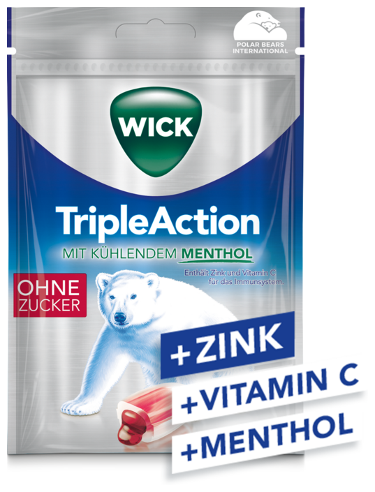 WICK TripleAction – Ihr Begleiter für den Tag. Genießen Sie ein tiefes Atemerlebnis mit kühlendem Menthol. Mit Vitamin C und Zink für das Immunsystem.* Atmen Sie tief ein und genießen Sie jeden Tag.
